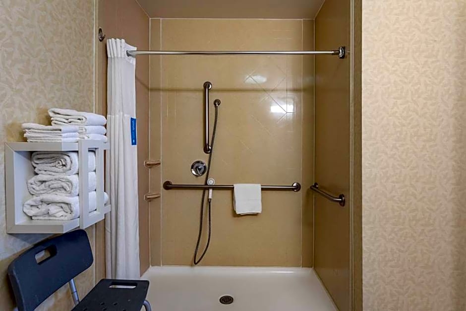 Any corresponding photo may not reflect the specific accessible room type or room feature. This mobility and hearing accessible, nonsmoking room features one king sized bed , and an accessible bath tub. The room also has a visual alarm and notification devices for the doorbell or door knock and incoming phone calls. The room features comfortable soft seating, microwave, refrigerator, a HDTV, and easy to operate alarm clock/radio. The free high speed internet access will help you stay connected while on the road. If you prefer not to work at the desk, you can use the convenient lapdesk instead. You'll also enjoy the convenience of having a coffee maker with tea service and iron/ironing board in your room.